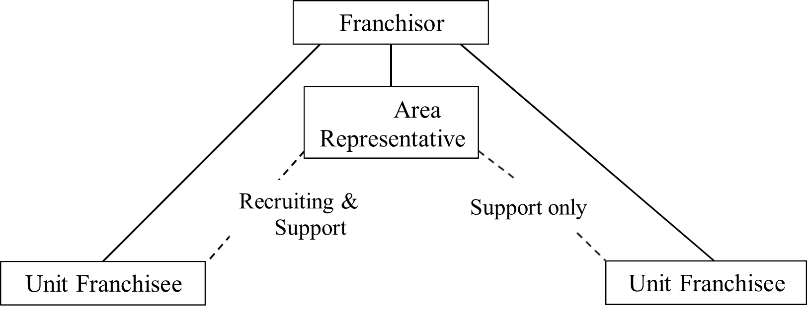 An Area Representation arrangement involves a person that is granted, for consideration paid to the Franchisor, the right to solicit or recruit third parties to enter into Unit Franchise Agreements with the Franchisor, and/or to provide support services to third parties entering into Unit Franchise Agreements with the Franchisor. The person granted these rights is a party to an “Area Representative Agreement” but is not a party to the Unit Franchise Agreements signed by the third parties. In this Commentary, an “Area Representative” is the person granted these rights, and the third parties signing the Unit Franchise Agreements with the Franchisor are called “Unit Franchisees”. The Area Representative, like a Subfranchisor, usually receives portions of the initial franchise fees and the continuing fees paid by Unit Franchisees, depending on the services the Area Representative provides. The Area Representative’s payment of consideration to the Franchisor for the right to recruit and/or provide support to Unit Franchisees is the element that makes the area representative different from a franchise broker or selling agent.